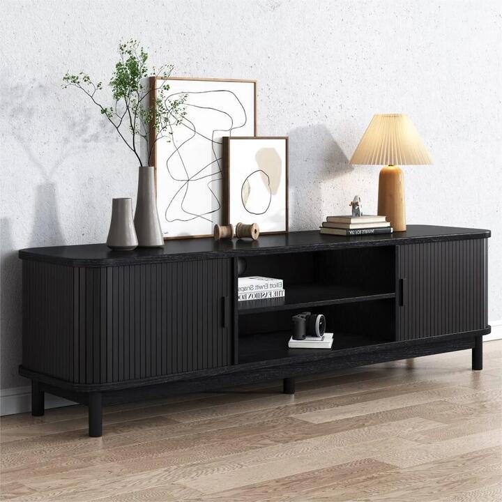 The TV Unit features a sophisticated ribbed look, elegant, curved frame, introduces a soft aesthetic to your living spaces. With 2 door storage and internal shelving with cable management holes, TV Unit provides ample storage for your entertainment needs.Available in two different colors to match any home decor. Chose a sleek black for a graphic touch or opt for natural for a softer, nature-inspired look.Features:Durable Construction with Pine Wood legsRibbed Elevated LookFour storage spacesWith cable management holesEyecatching oval shape2 door storage and 2 internal shelving providing plenty of storageTwo Colour AvaliablePackage Contents:1 X TV unitWARNING:Children have died from furniture toppling over.ALWAYS secure your furniture with an anchor device.Never allow children to stand, climb or hang on drawers, doors, or shelves.