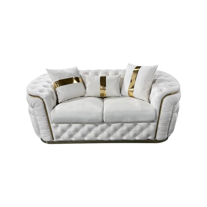 2 Seater Sofa Beige Velvet Fabric Solid Wood construction Gold Stainless Steel Trim