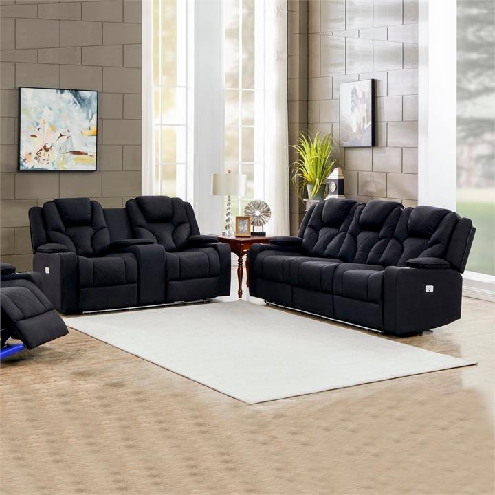 3+2 Seater Electric Recliner Stylish Rhino Fabric Black Lounge Armchair with LED Features