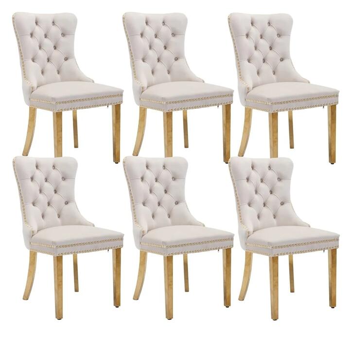 AADEN 6x Velvet Dining Chairs with Golden Metal Legs-Beige