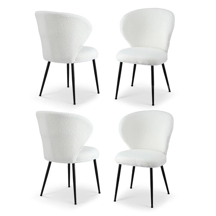 Enhance your living space with Artiss contemporary accent chair featuring premium sherpa fabric upholstery. The ergonomic curved backrest with shell design promotes airflow, paired with high-density foam cushions for lasting comfort. Sturdy powder-coated steel legs with non-slip protectors ensure stability on various floor types. Ideal for lounges, reading nooks or bedroom seating, this versatile chair supports up to 150kg. Modern white colour complements most décors. Simple assembly with included instructions. Spot-clean with damp cloth. *Actual colour may vary slightly between monitor displays.FeaturesPremium sherpa fabricHigh-resilience foamCurvy wing backrestExtra thick paddingSoft and plush seatSturdy and durable materialPowder-coated steel legsAnti-slip floor protectors150kg weight capacityEasy to maintainEasy assembly*Note:The actual colour may vary due to differences in monitor colour depth and make.Specifications:Brand: ArtissSeat material: Sherpa fabricLeg material: MetalOverall dimensions: 60cm x 50cm x 90cmColour: WhiteWeight capacity: 150kgAssembly required: YesNumber of packages: 2Package ContentArtiss Dining ChairX4Assembly manualX1This product comes with 1 year warranty