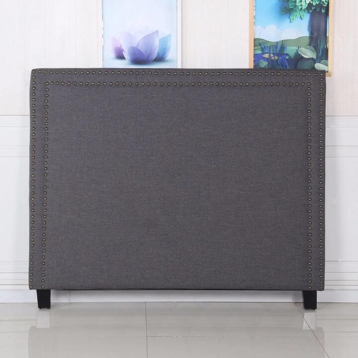 Bed Head Queen Charcoal Headboard Upholstery Fabric Studded Buttons