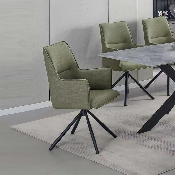 Dining Chair Green Linen Fabric Upholstered Seat Powder Coated Iron Legs