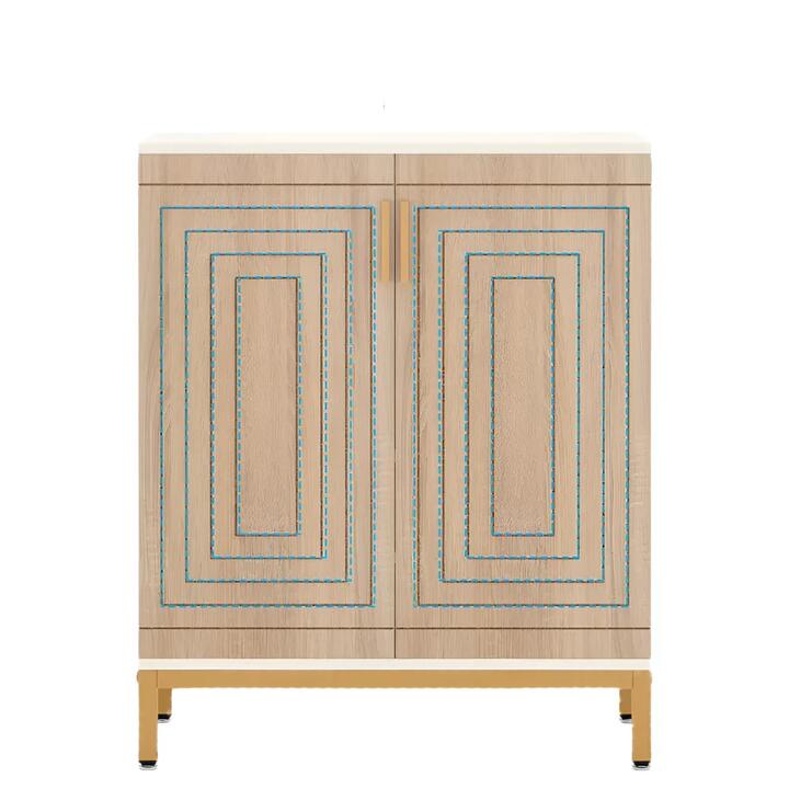 Organize Your Entryway with Style: 5-Tier Shoe Cabinet with Geometric Pattern Doors, White/Natural FinishSpecificationsColor: White/NaturalStyle: ContemporaryMaterial: Wood, Wood-based PanelMounting Type: Floor mountBack Material Type: Engineered WoodPower Supply: Use Without ElectricityContain Wooden Materials: YesTree Species: HardwoodWood Formation Type: Particle BoardDimensions: 31.5″ W x 15″ D x 30.3″ HCapacity: Holds 15-20 pairs of shoes (depending on shoe height and size)FeaturesAmple Storage Space: Five shelves inside for organizing and storing various shoe types, such as boots, flats, and sneakers.Geometric Pattern Doors: Stylish and modern design with two front doors featuring geometric patterns.Gold Legs: High metal legs in gold for easy cleaning and a touch of elegance.Durable Construction: Made of sturdy MDF and metal, ensuring durability and long-lasting use.Adjustable Feet: Ensures stability and prevents wobbling on uneven floors.Versatile Use: Can also be used as a spacious storage cabinet for other items.Sleek Golden Door Handle: Adds warmth and prevents scratches and injuries.DescriptionTransform your entryway, bedroom, or mudroom with the 5-Tier Modern Shoe Rack Storage Organizer with Doors. This contemporary shoe cabinet, available in a sleek white/natural finish, offers a stylish solution to your shoe storage needs. Crafted from durable MDF and wood-based panels, this cabinet features two geometric patterned doors that open to reveal five spacious shelves, capable of holding 15-20 pairs of shoes, depending on their height and size.The high metal legs in gold not only add a touch of elegance but also make cleaning under the cabinet easy and convenient. The removable shelves inside allow for versatile storage, accommodating shoes of different heights and large sizes. The top of the cabinet can be used for decoration or storing daily essentials, while the bottom provides extra space for additional shoes.Measuring 31.5″ W x 15″ D x 30.3″ H, this shoe rack saves valuable floor space while providing ample storage. The adjustable feet ensure the cabinet remains stable on any floor surface, preventing wobbling. The sleek golden door handle adds a warm touch and protects against scratches and injuries during use.Whether you need to organize your footwear or add a stylish storage solution to your home, this 5-Tier Modern Shoe Rack Storage Organizer is the perfect choice. Enjoy a clutter-free and beautifully organized space with this versatile and durable cabinet.⚠️ WARNINGChildren have died from furniture tipover.ALWAYS secure this furniture with an anchor device.NEVER allow children to stand, climb or hang on drawers, doors, or shelves.