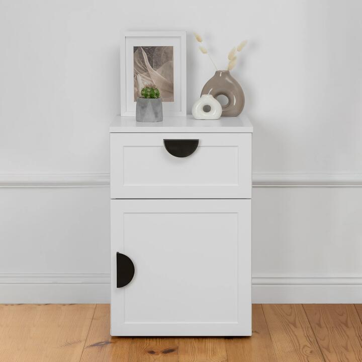 Porto Bedside Table – White – Hamptons – Half Moon Black