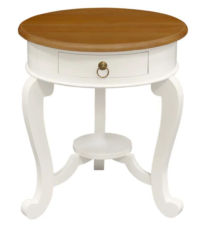 Round Cabriole Leg 1 Drawer Lamp Table (White Caramel)