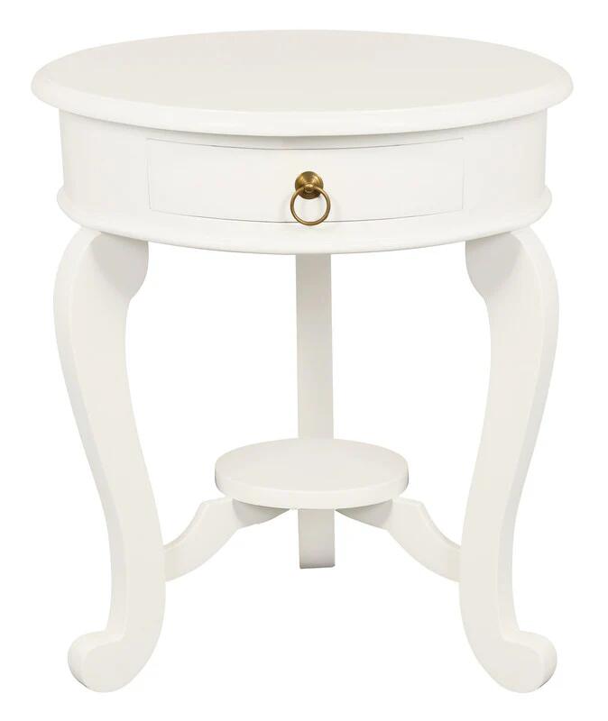 Round Cabriole Leg 1 Drawer Lamp Table (White)