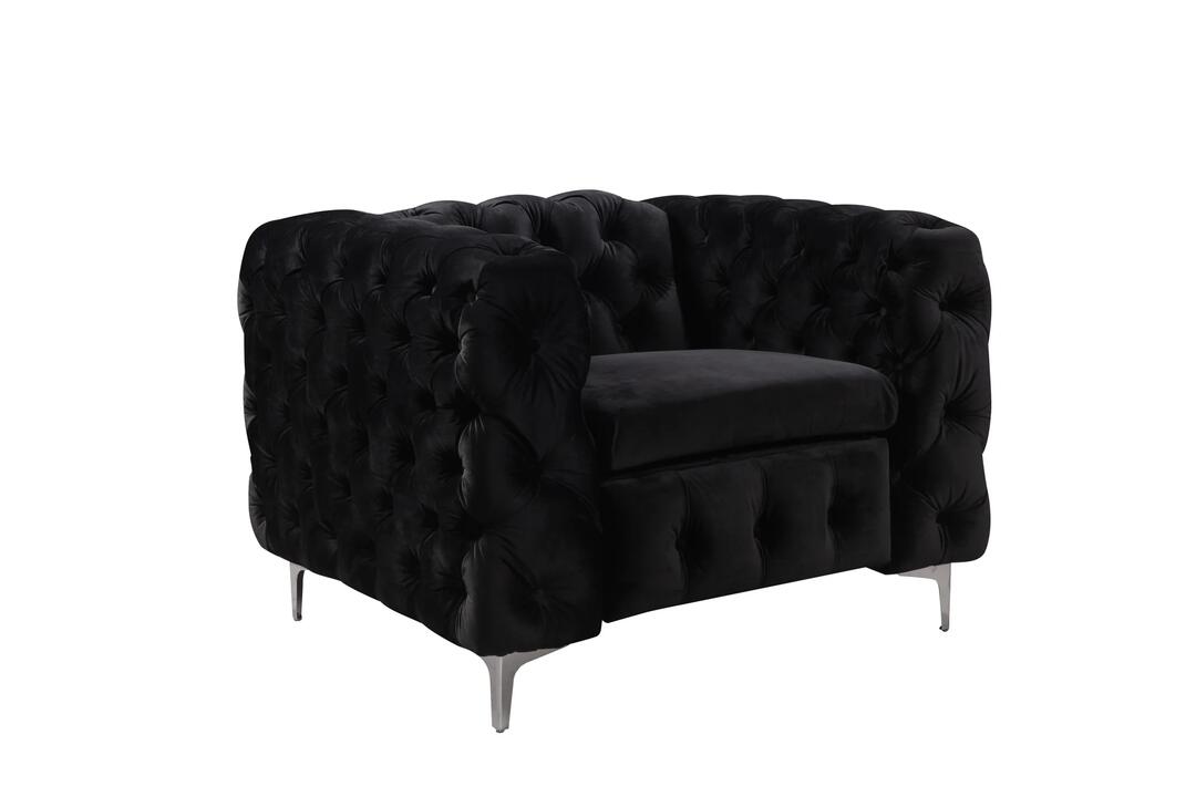 Single Seater Black Sofa Classic Armchair Button Tufted in Velvet Fabric with Metal Legs